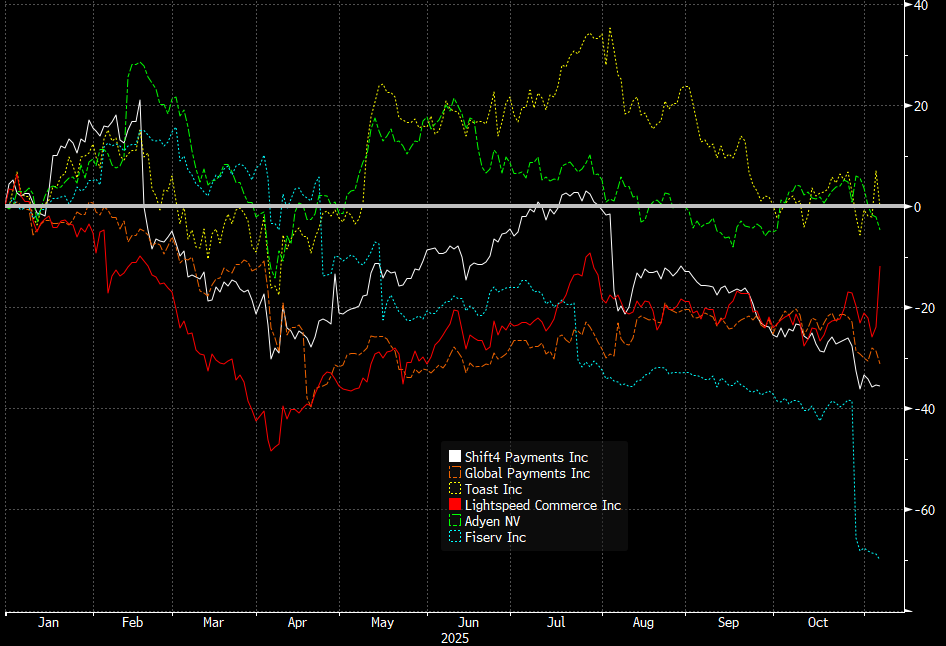 Management clearly believes shares are undervalued and is taking action to capitalize on the opportunity with a $1B share repurchase program. They recognize that FCF per share is the north star, and this program alone could lead to the repurchase of approximately 15% of the current market cap. FOUR continues to make progress toward its medium-term financial targets and remains aggressive with M&A. At ~8x EV/EBITDA, I don’t believe I’m paying for growth or optionality from M&A. I remain positive on FOUR, but it has been a painful ride year-to-date.